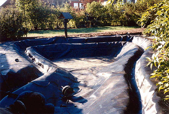 Kleine und große Teichanlagen können wir dauerhaft mit robusten, wurzel- und nagetierfesten Dichtungsbahnen abdichten. |
